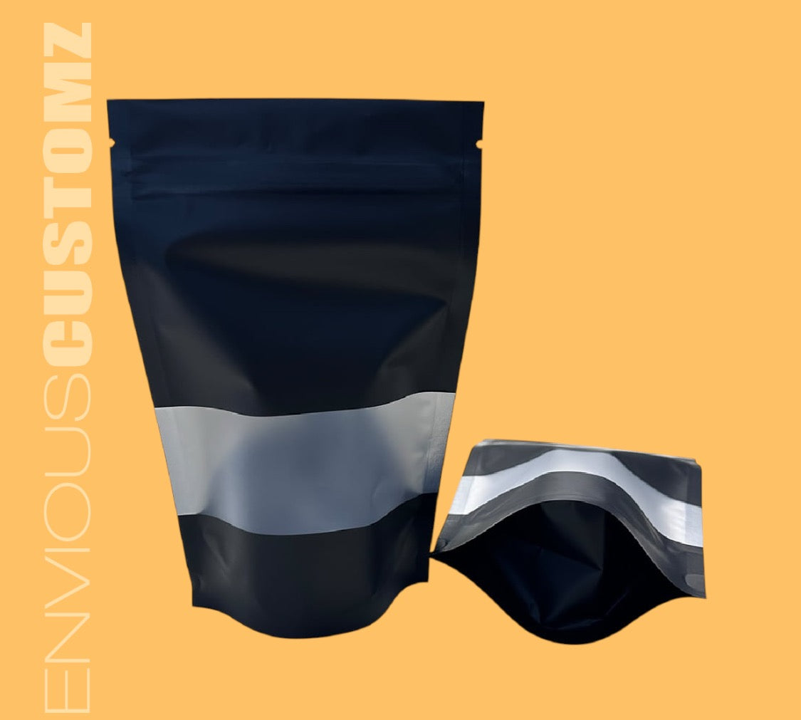 70g Matt Black Stand Up Pouch with Window & Zipper, Foil Lined